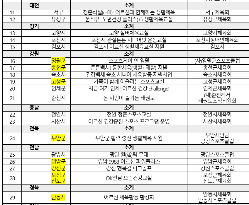 | 자치센터 | 지역 주민과 함께하는 생활체육 |