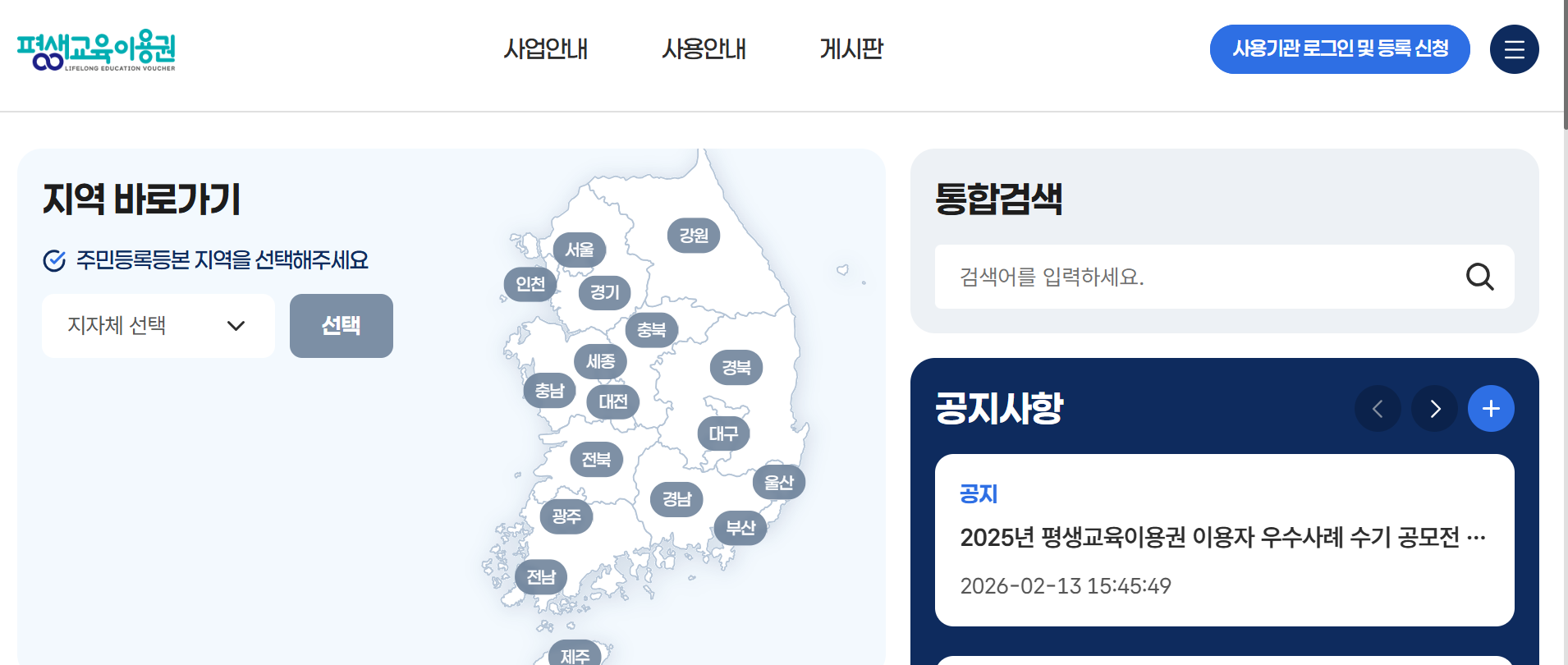 | ☑ | 수강하고 싶은 기관이 평생교육이용권 사용기관으로 등록되어 있는가? |