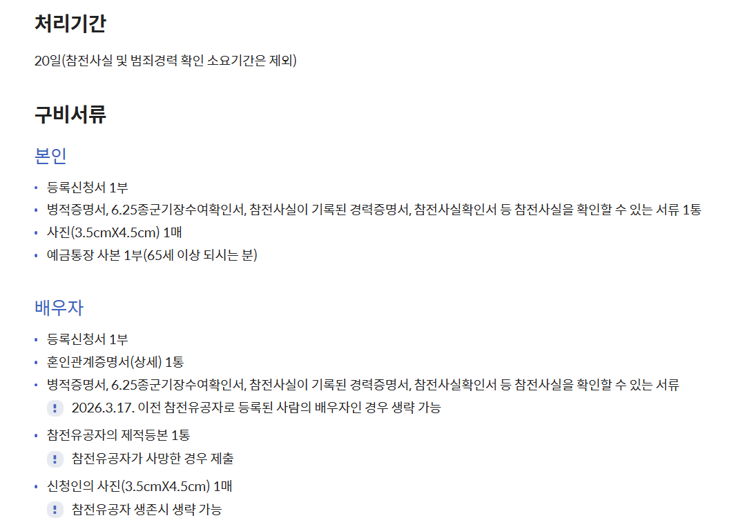 여기서 중요한 점은 ‘참전유공자가 이미 사망한 경우에도 신청이 가능하다’는 것입니다. 기존에는 본인 중심으로 지원이 이루어졌지만, 이제는 배우자도 독립적으로 지원 대상이 됩니다.
