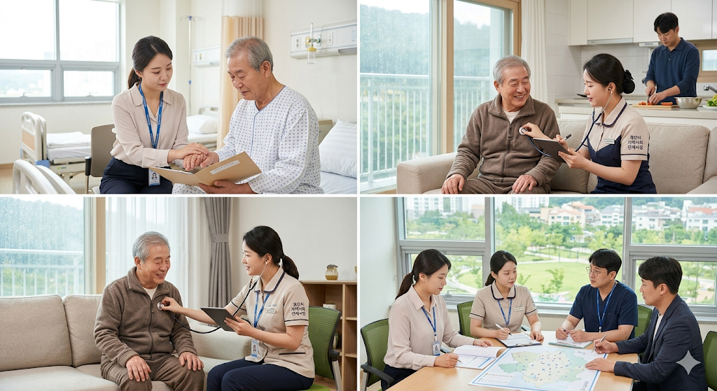 경산시는 전국 공통 사업 외에도 지역 특성을 반영한 특화사업을 별도로 추진하고 있습니다. 그중 가장 핵심적인 것이 퇴원 환자 지역사회 연계사업입니다. 병원에서 치료를 마치고 퇴원한 후 집으로 돌아갔지만, 아직 혼자 일상생활을 꾸리기 어려운 분들이 대상입니다.