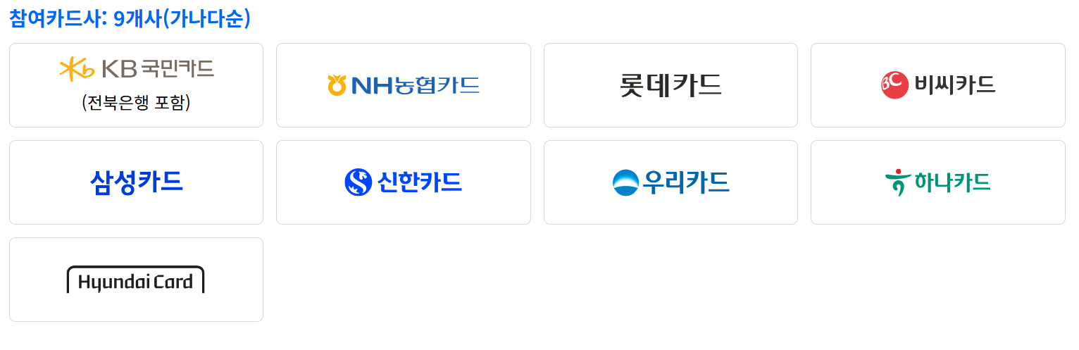 혜택을 적용받을 카드사를 선택해야 합니다. 이후 해당 카드에 크레딧이 등록됩니다.