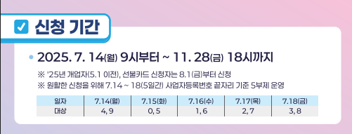 📌 신청 기간은 2025년 7월 14일(월) 오전 9시부터 11월 28일(금) 오후 6시까지입니다.