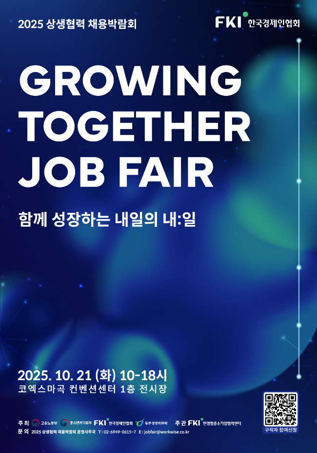 2025년 하반기, 정부와 대기업이 손잡고 청년과 기업을 잇는 대규모 채용박람회가 열렸습니다. 바로 ‘상생협력’을 키워드로 한 2025 상생협력 채용박람회(Growing Together Job Fair) 입니다.